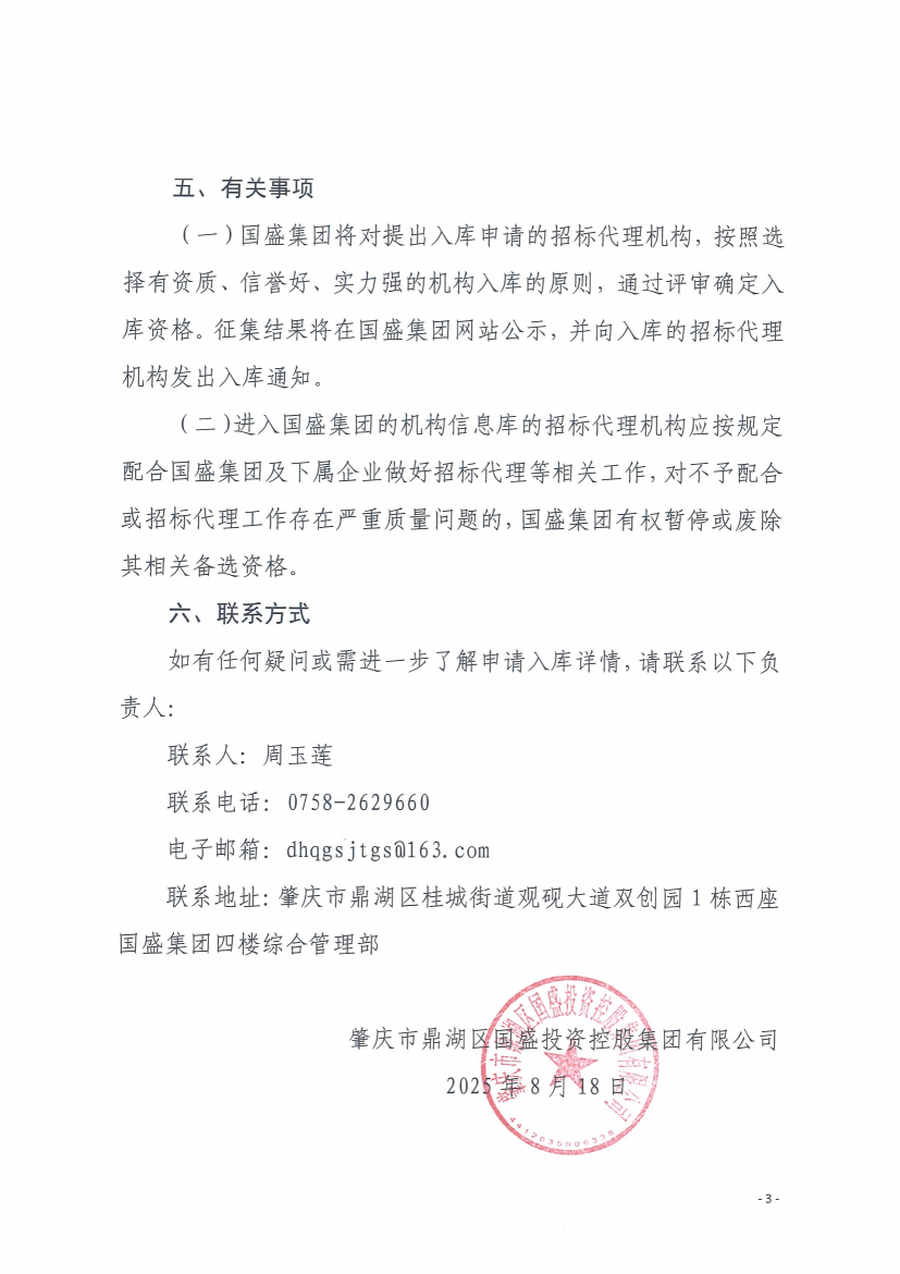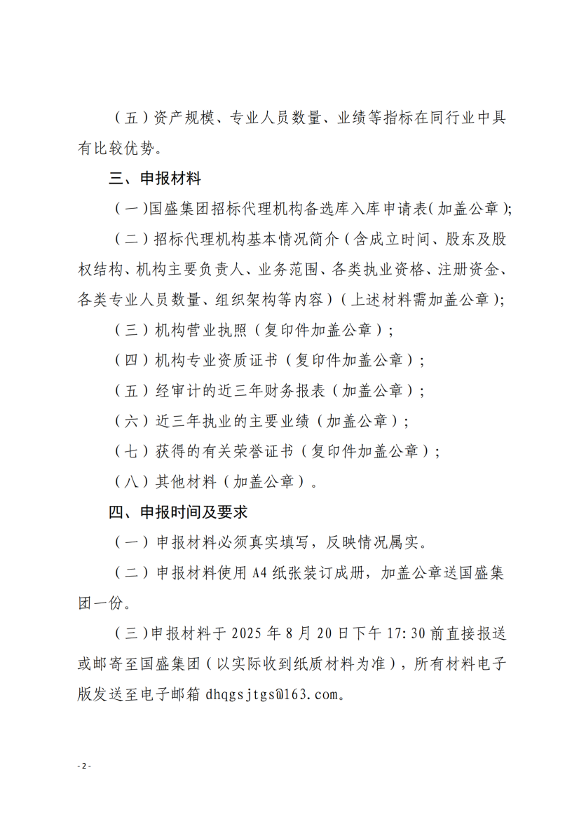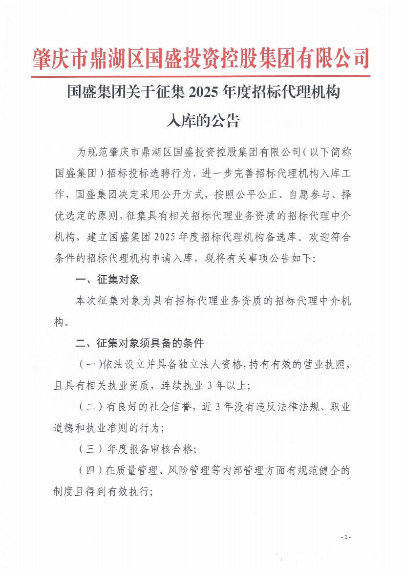 国盛集团关于征集2025年度招标代理机构入库的公告