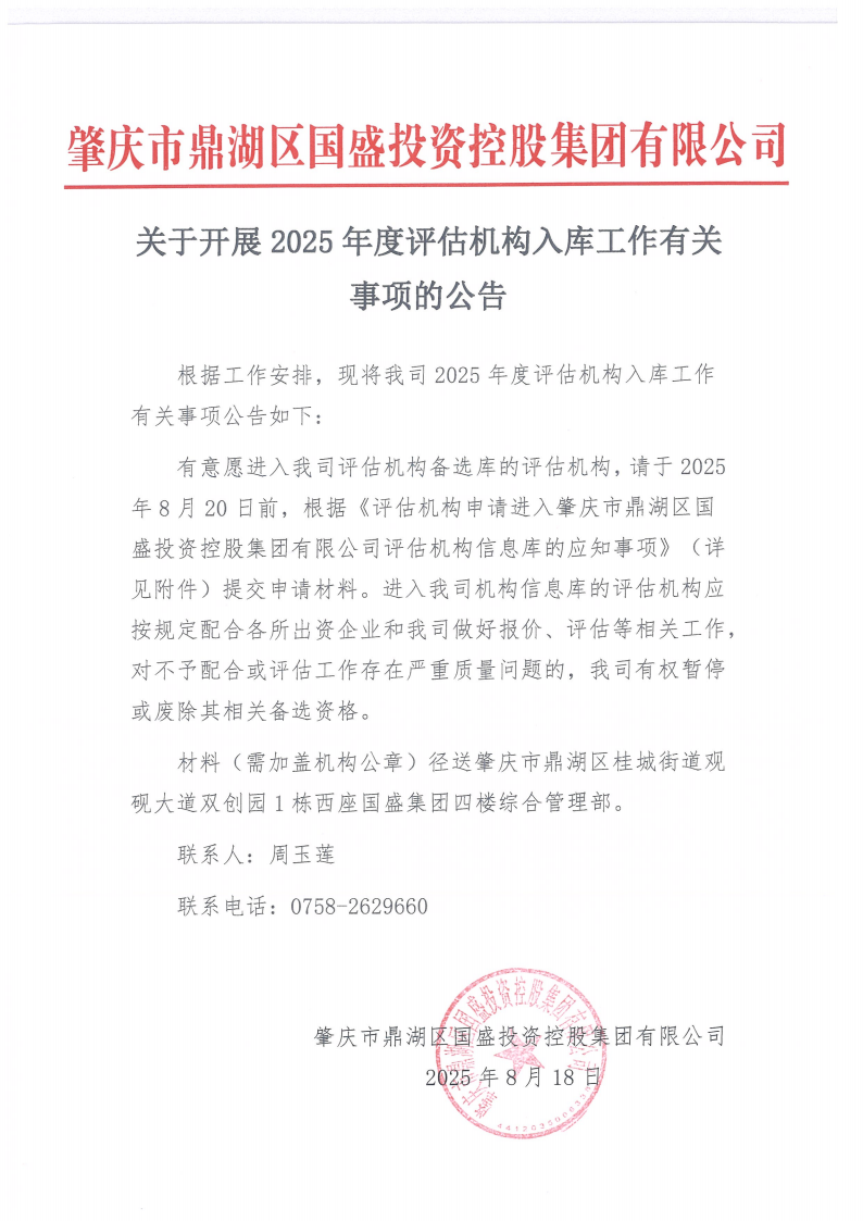 评估机构申请进入肇庆市鼎湖区国盛投资控股集团有限公司评估机构信息库的应知事项.docx